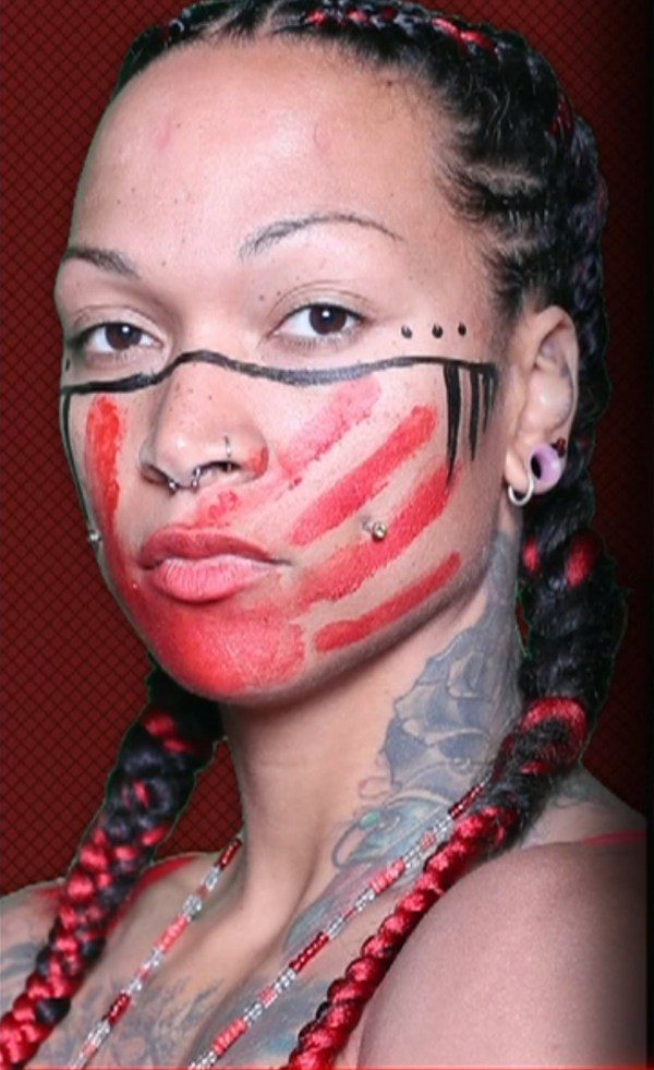 The metal studs that pierce her cheeks are not merely a fashion statement; instead, they are a nod to her Native American culture.